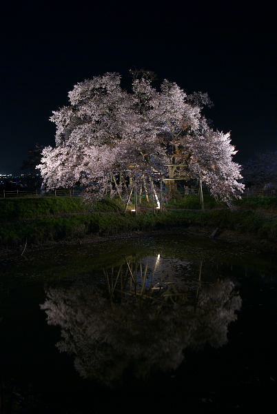 空も暗くなってくると、その大きな桜が浮かび上がってきます。