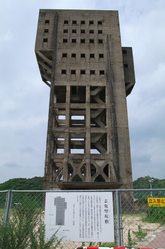 フェンスに掛かっていた説明によるとこれは国営志免鉱業所の竪坑櫓だそうです。